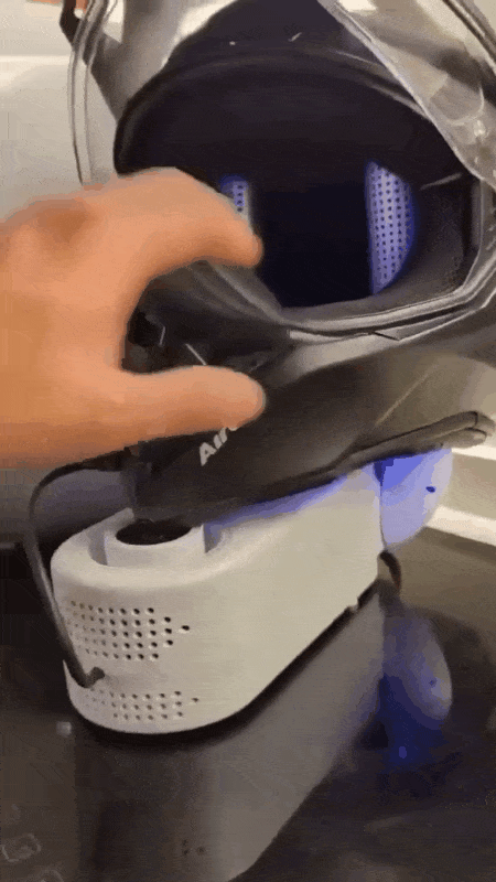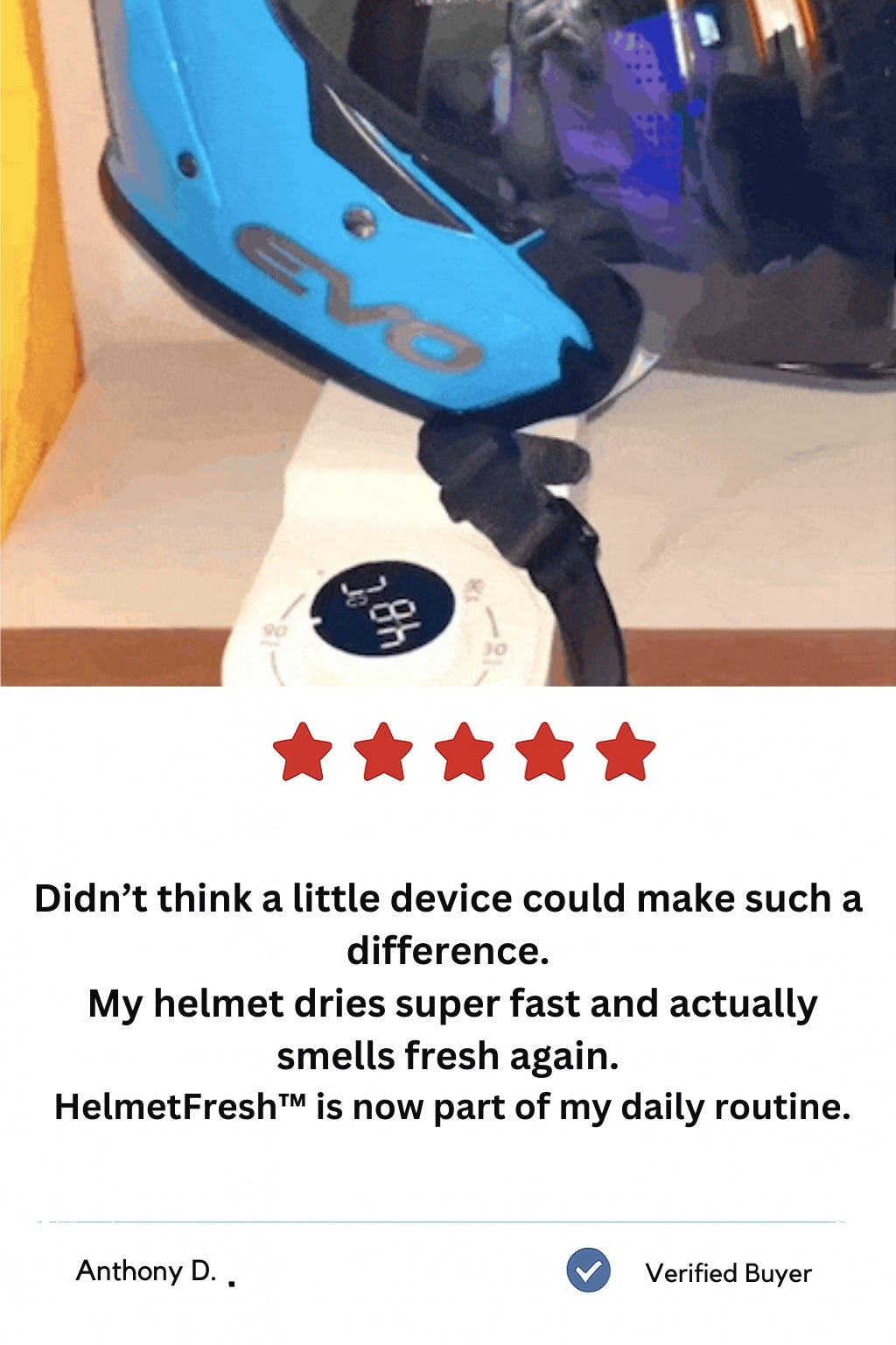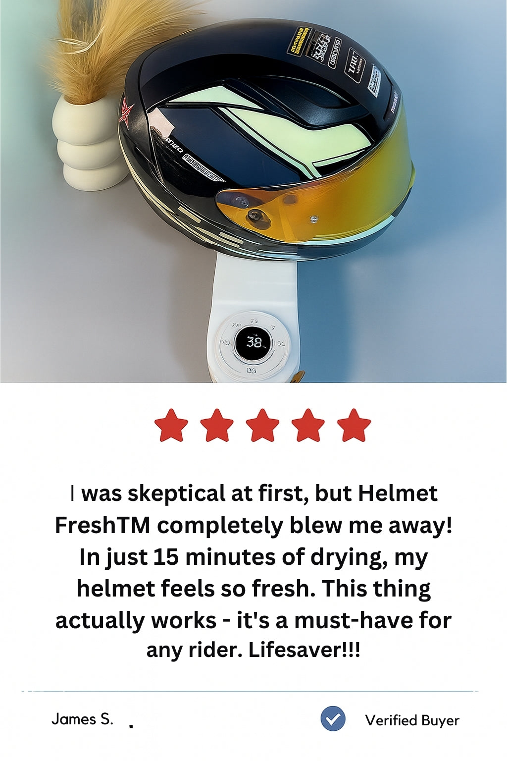 HelmetFresh™ solves this with gentle heat circulation and targeted airflow that dry the padding fast, eliminate odor, and reduce the moisture buildup that leads to bacteria, clogged pores, and scalp irritation.